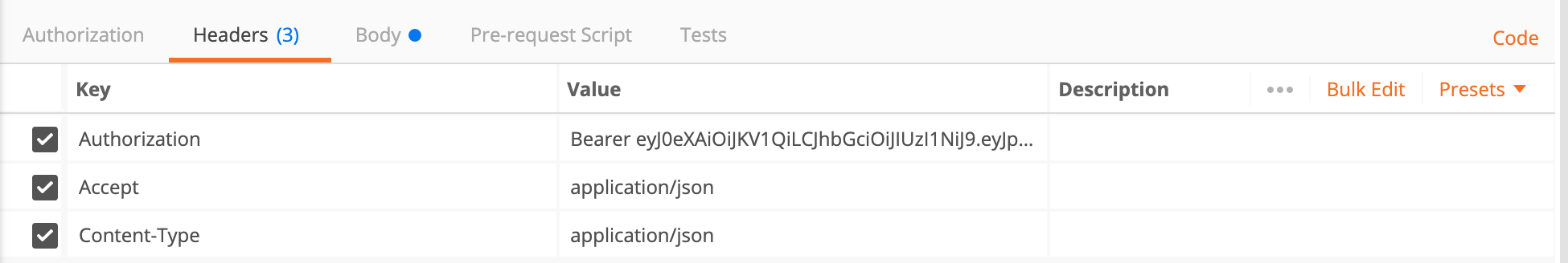 There are three headers; each is explained below: